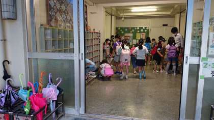自分たちが使っている昇降口で学年の先生に元気よく「おはようございます。」「こんにちは」とあいさつをして教室へ向かいます。