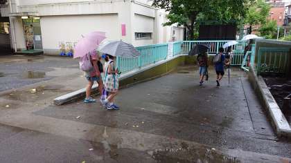 あいにくの雨のため、傘をさした長靴姿の子どもたちの姿が多かったように思います。