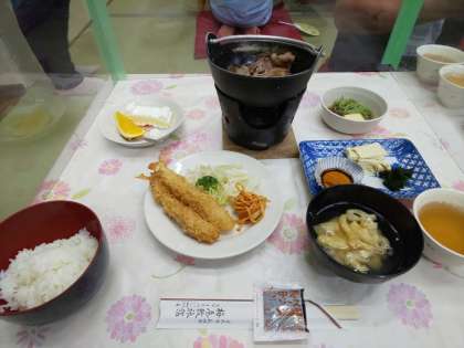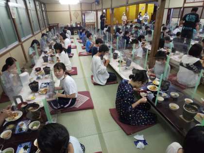 宿舎の方から献立の説明とおかわりの仕方とサインについての説明があり、みんなで「いただきます!」をしました。
