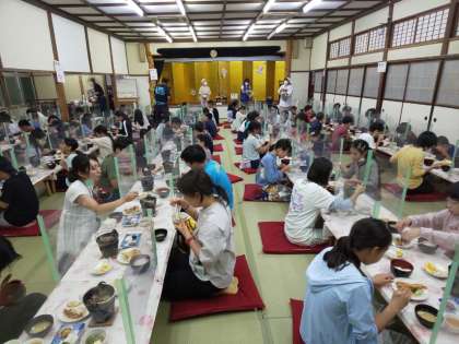 宿舎の方から献立の説明とおかわりの仕方とサインについての説明があり、みんなで「いただきます!」をしました。