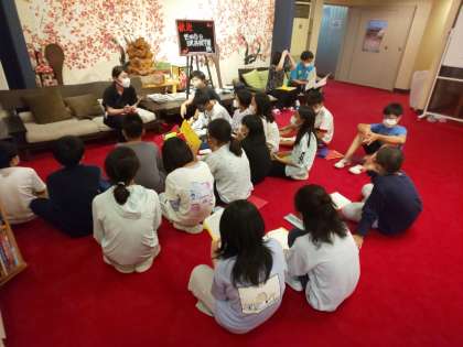 健康観察と就寝準備、そして一日のまとめの記録を進め、生活班の班長がロビーに集まり、室長会議を行いました。