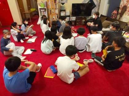 みんなで明日につなげるための振り返りを行い、明日の予定を確認しました。