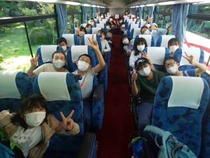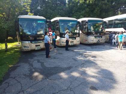 バス3台に分乗して、これからいろは坂を上り、華厳の滝を目指しています。