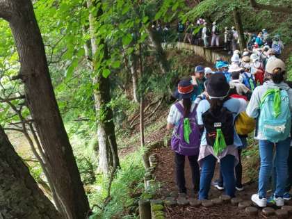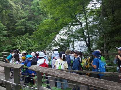 湯ノ湖の湖畔西側のコースをハイキングし、湯滝まで来ました。
