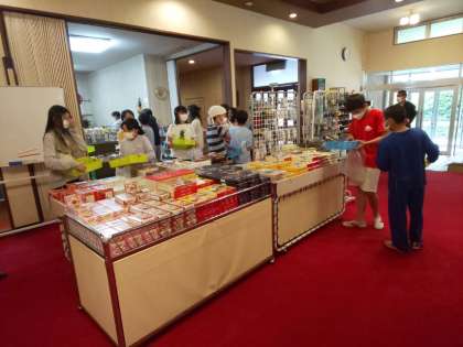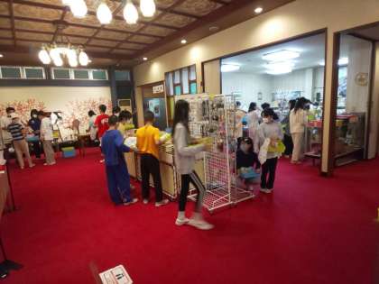 そして、宿舎のロビーが特設のおみやげコーナーになり、子どもたちは、おみやげの購入を楽しんでいます。