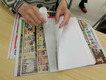 印刷された1枚1枚の紙を丁寧に手作業で貼り合わせていきます。