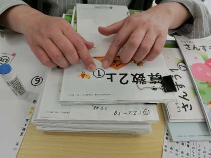 今日はその、手作りの拡大教科書をボランティアで作ってくださっている