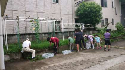 夏季休業中の毎週水曜日(学校休業日の17日を除く)の朝8時から8時30分の時間帯で地域の方と笹原小・桜丘小の子ども、笹原小教職員で学年花壇の雑草抜きをしていました。