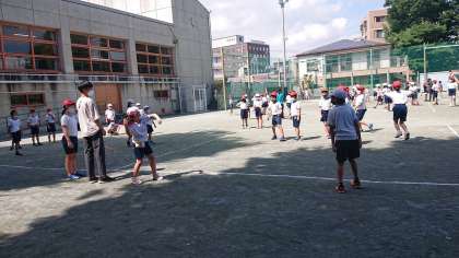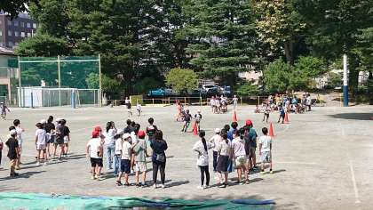 みんな汗だくで、終了の放送を聞いて教室へ戻ります。