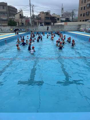 少し肌寒い中、3年生は2学期初めてのプールを行いました。