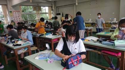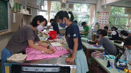 展覧会に向けて6年生は「エプロン」の製作に取り組んでいます。