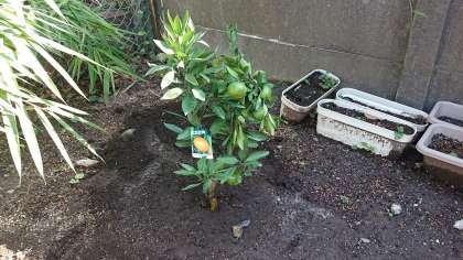 今日の午後にささっちガーデン(東門)にみかんの木を植樹しました。