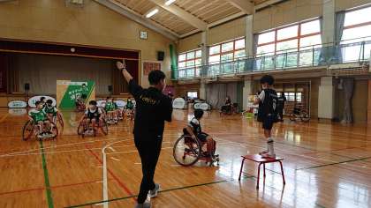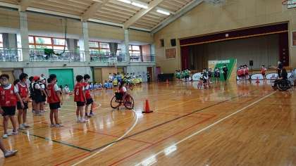 今日の午後は、子供を笑顔にするプロジェクトによる「あすチャレ!運動会」(提供:日本財団パラスポーツサポートセンター)を体育館で実施しました。