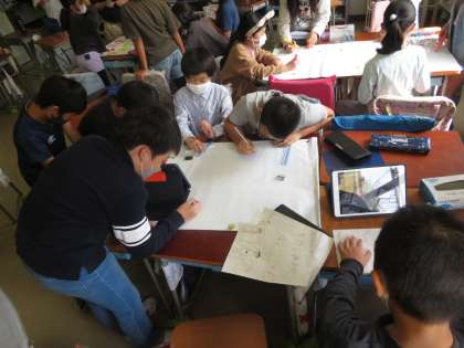 子どもたちは、完成したペナントがいつから飾られるのか楽しみにしています。
