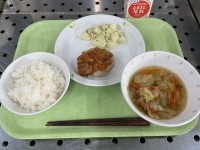 今日は今年度初めての「ジャンボぎょうざ」です。普通のぎょうざの皮の大きさは、7cmくらいですが、ジャンボぎょうざの皮はなんと15cmもあります。