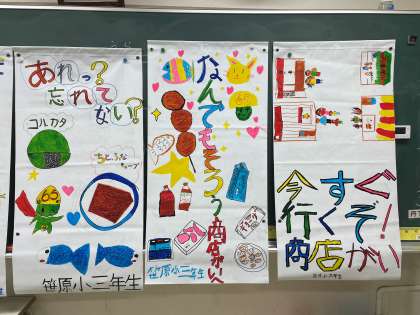 3年生は、スマイルプロジェクトの一環で商店街のペナント作りに取り組んでいます。