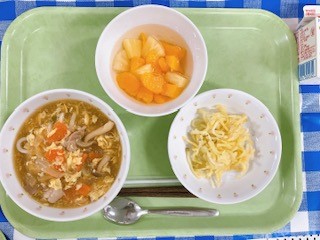 かきたまうどんに入っている、卵の豆知識です。卵は白身と黄身で固まる温度が違います。黄身は70度で固まりますが、白身は80度にならないと固まりません。
