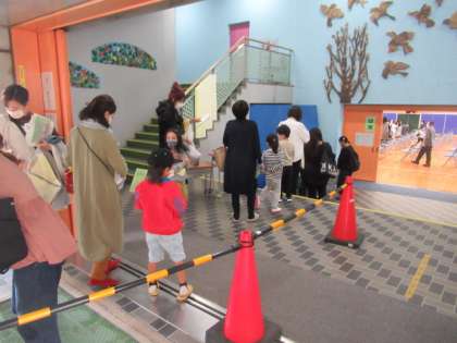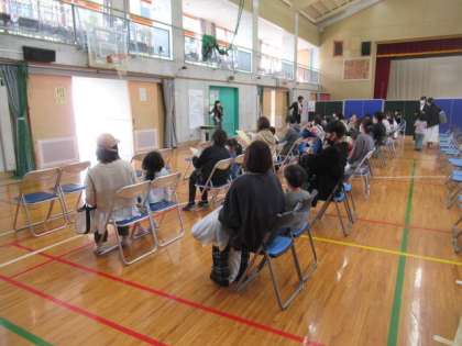 受付を行ったあと予定した健康診断の流れに基づいて、お子さんと保護者の方に一緒に会場を移動していただきました。ご協力いただきありがとうございました。