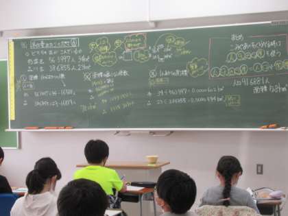 今日の2時間目、算数学習室のグループでは、既習事項をもとに東京の2つの区(杉並区と品川区)の混み具合を見通しを立てて調べ、求めた数値から混み具合を比べました。その際、一人一人が自分の考えをもち、全体で比べ方を吟味し、混み具合の根拠を明らかにしながら学習を進めていました。