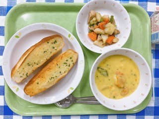 読書週間6日目の今日は、「3びきのくま」という絵本を紹介します。くまの一家がある日森に出かけている間に。くまの家に迷い込んだ女の子。とてもおなかが空いていた女の子は、くまの家にあったスープを食べました。おおきなおわんのスープ、ちゅうくらいのおわんのスープ、ちいさなおわんのスープ…。給食室でも、絵本に出てくるようなあたたかいスープをつくりました。