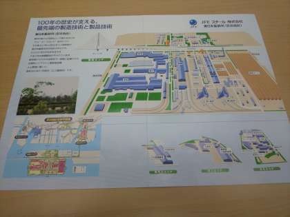 約1時間にわたって、施設内を車窓から、また圧延工程をバスから降りて間近から見学しました。