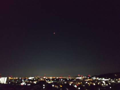 現在、皆既食が始まりまっています。赤黒く見える月が観察できます。