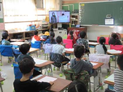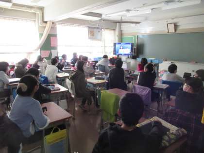 視聴した後、担任からも補足説明や振り返る言葉かけがあり、給食について考える機会になりました。