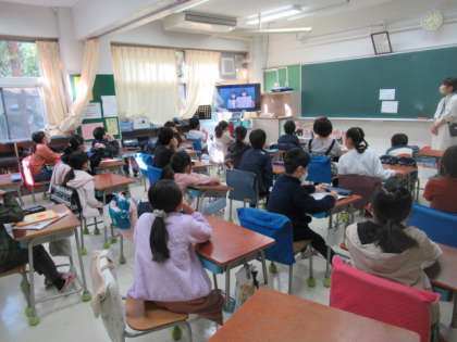 今日の児童集会は、「保健給食委員会」のみなさんによる発表集会でした。事前に制作した動画を配信し、各教室で視聴しました。