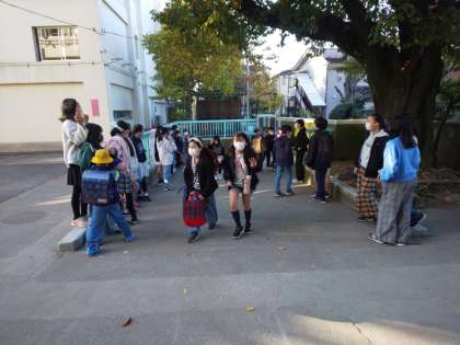 正門では、今日もたくさんの6年生が朝のあいさつ声かけ活動に積極的に参加して、あいさつ週間を盛り上げています。