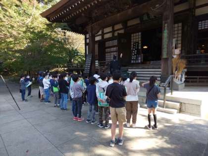 お寺の方から、歴史や仏像の由来、伝統行事などについて説明があり、詳しく学んでいます。
