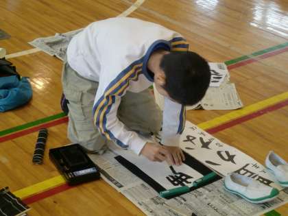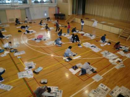本日は5年生が体育館で席書を行いました。お題は「豊かな心」です。「豊」という漢字は画数が多く、バランスが取りづらい字です。今日も寒い中でしたが、一人ひとり集中してしっかり取り組めていました。こちらも書き初め展をお楽しみに。