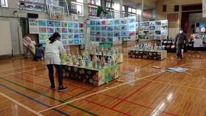 今日の放課後は、展覧会に向けての職員作業で立体作品展示です。