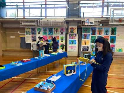 今日は児童鑑賞日でした。6年生は5時間目に鑑賞しました。細かい飾りまでじっくり見たり、遠くから全体を眺めてみたり・・・。いろいろな見方をすることができました!水曜日はかんしょうガイドをしましたが、今日はゆっくりじっくりと作品を見ることができました。小学校生活最後の展覧会。明日は保護者の方々に向けてかんしょうガイドをします。よろしくお願いします。