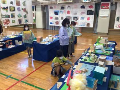 笹原小に入って2回目の展覧会でしたが、体育館の入口を開けると子どもたちからは
