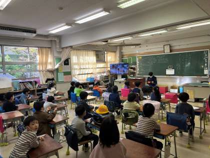 本日は長縄跳び朝会がありました。運動委員のみなさんが頑張って練習して撮影した動画を視聴しました。基本的な『八の字跳び』に加えて、『郵便屋さん』『7羽のカラス』『しりとび』などの工夫した楽しい跳び方も動画にまとめました。今日の中休みから、12月2日までの中休みが長縄跳び週間になります。寒くなってきましたが、みんなで中休みに、楽しみながら運動しましょう!