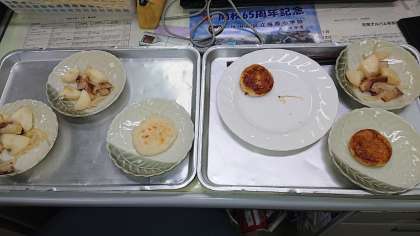 子どもたちは、ジャーマンポテトとじゃがもちを小皿に盛り付けて、お盆にのせてラップをかけて職員室へ試食として運んでくれました。