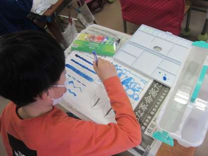 机の上の用意の仕方、水の汲み方、筆やパレットの使い方、後片付けの仕方などなど、みんなが覚えることは盛りだくさん!