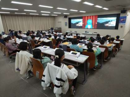現在、工場の方々に案内していただき、DVDを視聴したり工場の説明を聴いたりし、ごみの処理や環境を大切にした取組などについて学習しています。