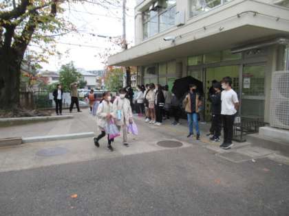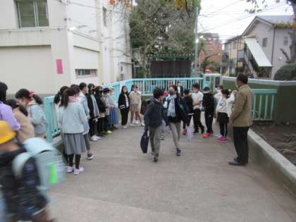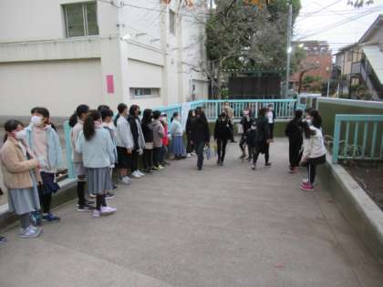 今回、登校時間に正門で朝の声かけ活動に取り組むのは、5年生のみなさんです。少し早く登校し、正門で登校して来るみなさんを迎えていました。