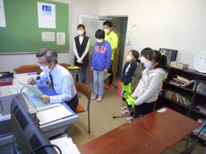 校長先生のお話のあと、1年生3人が楽しかったお店や内容の感想を発表しました。初めて放送室に入りましたが、しっかりと話すことができました。