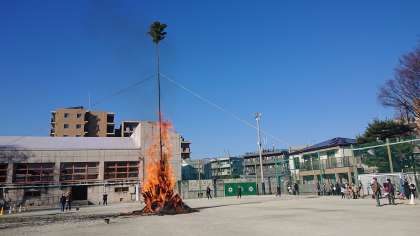 今年は、伝統行事としての「どんど焼き」を感染対策を講じた上で、笹原小学校の校庭で行いました。