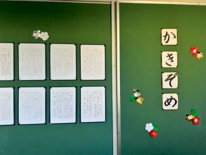 明るく元気に過ごせるよう思いを込めて書き初めをしました。お手本をよく見て、一画一画集中して書き、素晴らしい作品に仕上がりました。