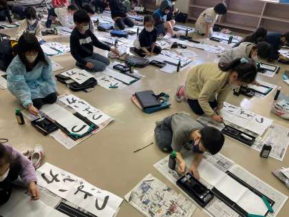 3年生になって初めて取り組んだ習字です。みんな初めの頃よりもとても丁寧に書けるようになってきました。