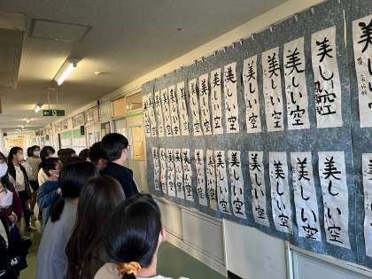 6年生は「美しい日本語週間」で朝の時間を使って、これまでに学習した題材を朗誦したりこれから学習する題材を読み見通しをもったりしました。また、各学年の掲示してある書き初めを鑑賞しました。「この字書いたな〜」と今までのことを思い出したり、異学年の友達の字を見て「この字が上手!」とよさを見付けて伝え合ったりしました。3学期の教科「日本語」の学習にも、つなげていきたいと思います。