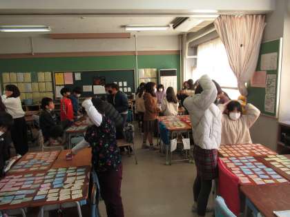 日本語の授業では、百人一首の源平合戦を楽しみました。「この1首だけは絶対取る。」と、上の句と下の句を覚えて取り組んでいまいた。