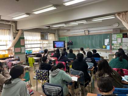 本日6年生は、2校時に1組が、3校時に2組が、4校時に3組が「障がい者スポーツ」や「視覚障がい者の日常生活」について、オンラインで話を聞きました。最初に、デフサッカー、電動車イスサッカー、アンプティサッカー、CPサッカー、知的障がい者サッカー、ソーシャルフットボール、ロービジョンフットサル、ブラインドサッカーそれぞれのスポーツの特徴について話を聞きました。