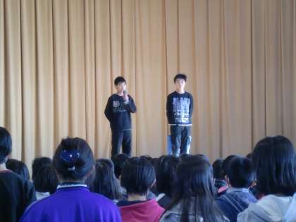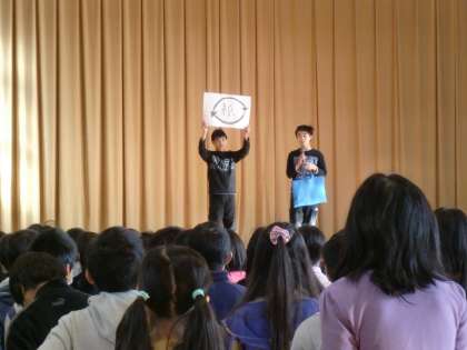 今日の児童朝会では、初めに、世田谷区図工作品展に出品した作品の表彰を行いました。6年生のスピーチは、リサイクルと雪のお話でした。普段身近なことからの話題を扱ってくれるので、1年生もしっかり聞いています。