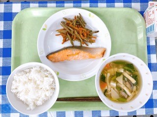 幽庵焼きとは、江戸時代に北村ゆうあんさんという人が考えた料理です。「しょうゆ・酒・みりん」と「ゆず」や「かぼす」などのかんきつ類を合わせたものに、魚や肉を漬けて焼いた料理です。今日は旬のゆずをつかってつくりました。ゆずのさわやかな凝りが、鮭を上品なおいしさにしてくれます。
