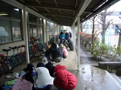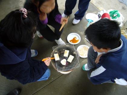 1月30日(金)雨。本日の七輪体験は、雨が降っていたので、図書室近くで体験学習を行いました。苦労して焼いたおもちの味は格別だったようです。多くの保護者の皆様のご支援、ありがとうございます。