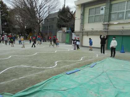 寒い日でしたが、どの班も遊びに熱中していました。